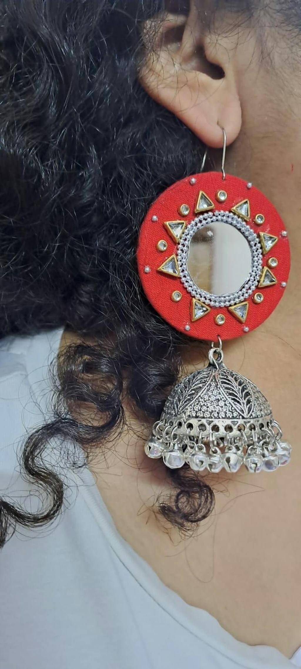 Embroidered Fabric Earrings: Handmade