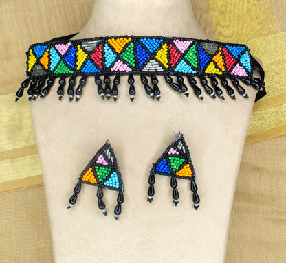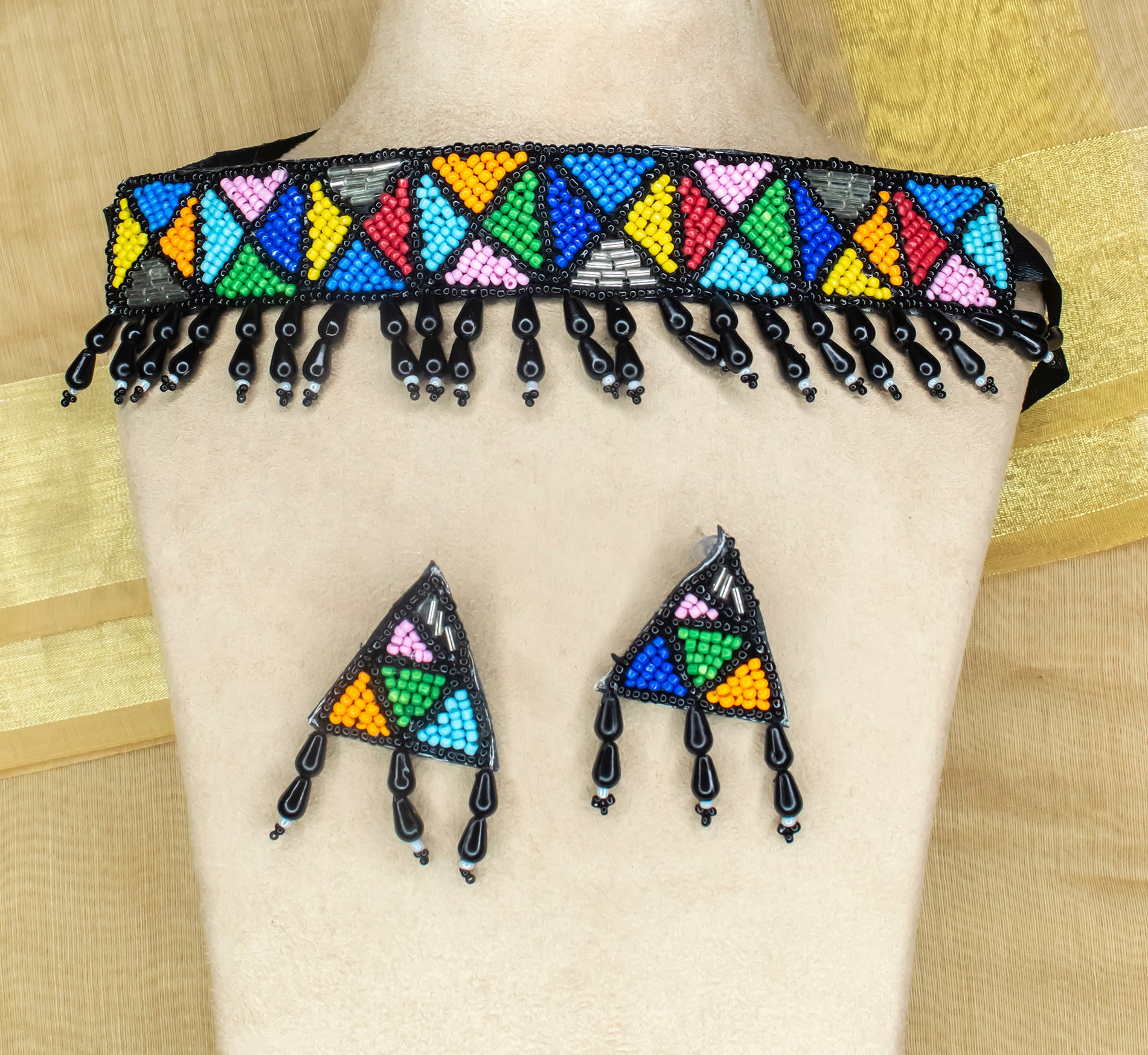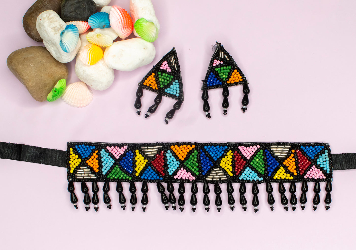 The matching earrings are also embroidered and add a perfect complement to the choker. They are lightweight and easy to wear, making them a great choice for any occasion.