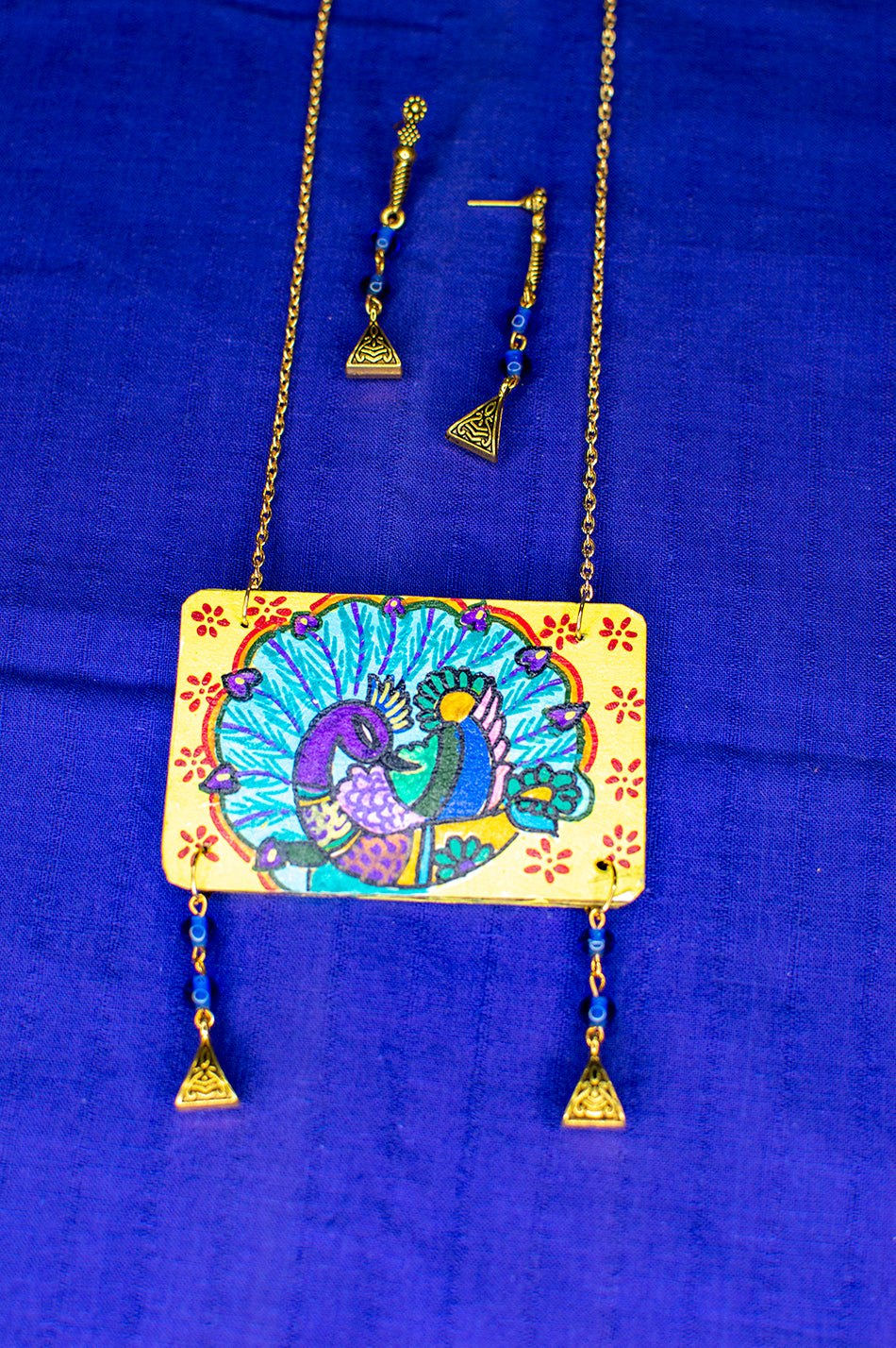 - The Handpainted Dhvajee Necklace Set is a versatile accessory that can be paired with a range of other jewelry pieces. Mix and match different metals to create a unique and personalized look that's all your own.