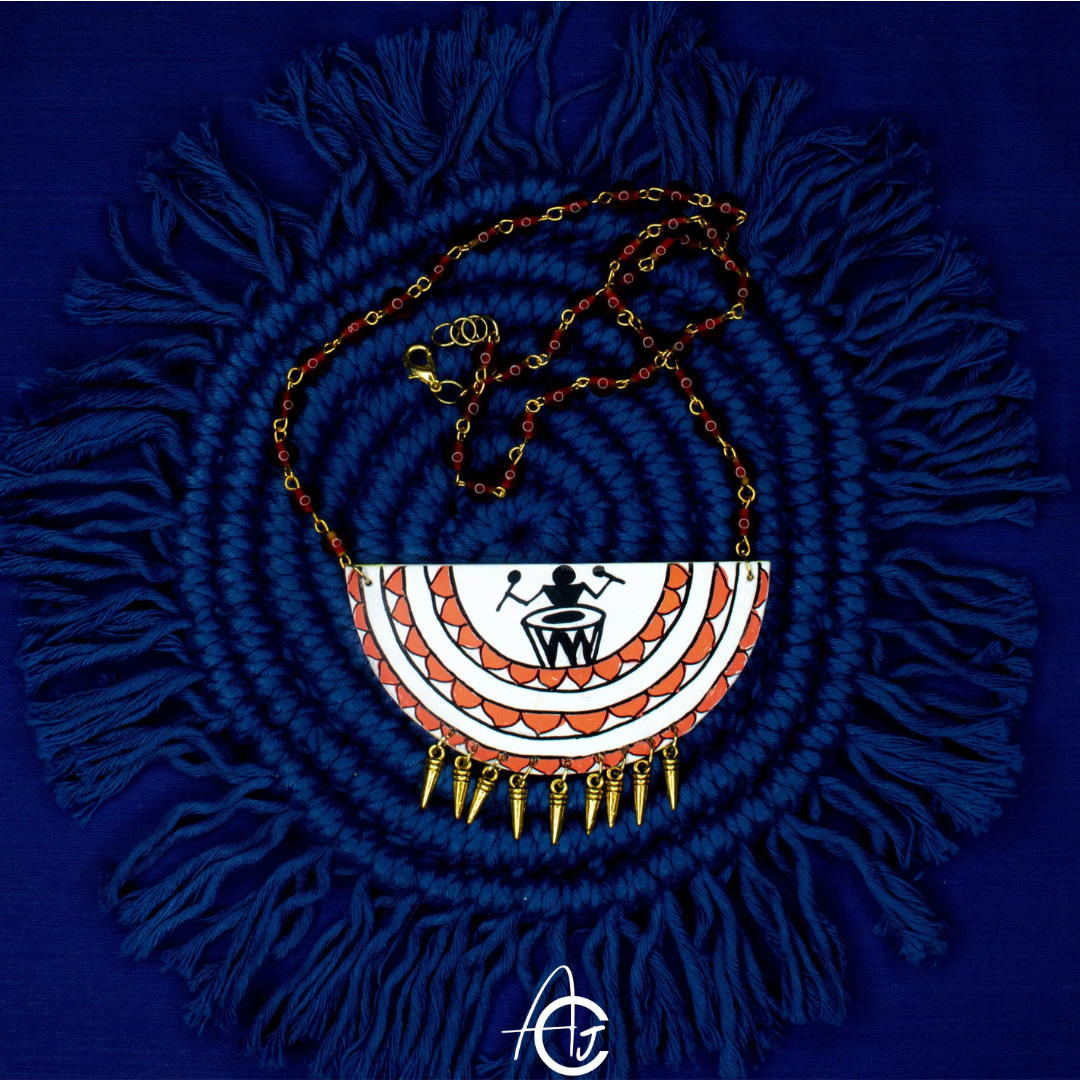 The Handpainted Drummer Necklace is a true work of art that is both beautiful and meaningful. By wearing this necklace, you can showcase your appreciation for traditional art forms and support skilled artisans who create these unique pieces. So, if you're looking for a one-of-a-kind accessory that is sure to turn heads, the Handpainted Drummer Necklace in Warli style is a must-have!