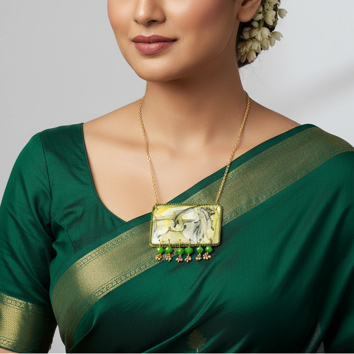 Beautiful necklace designed and painted by hand in various shades. This is a must have in your jewelry collection.