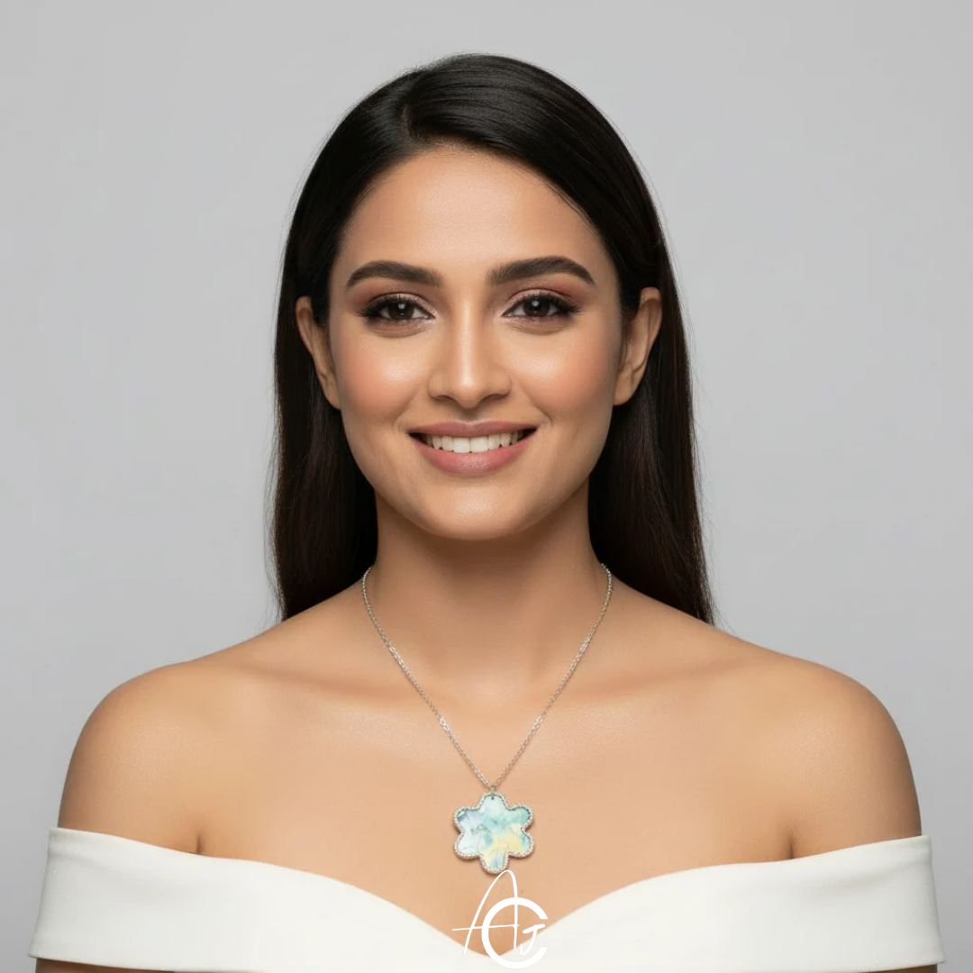 Beautiful necklace set designed and painted by hand in various shades. This necklace is a must have in your jewelry collection.