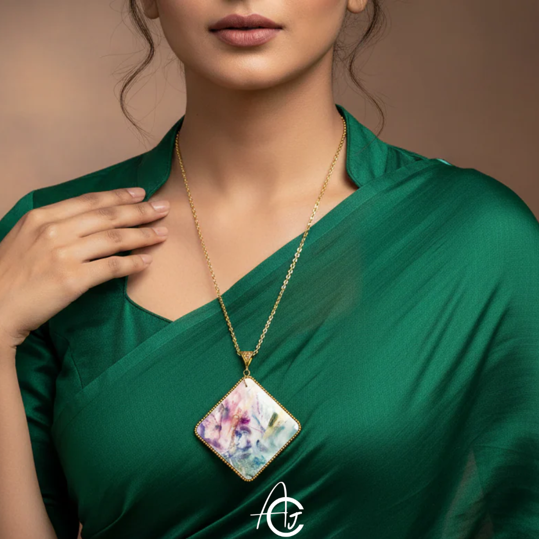 Beautiful Freida necklace designed and painted by hand in various shades. This is a must have in your jewelry collection.