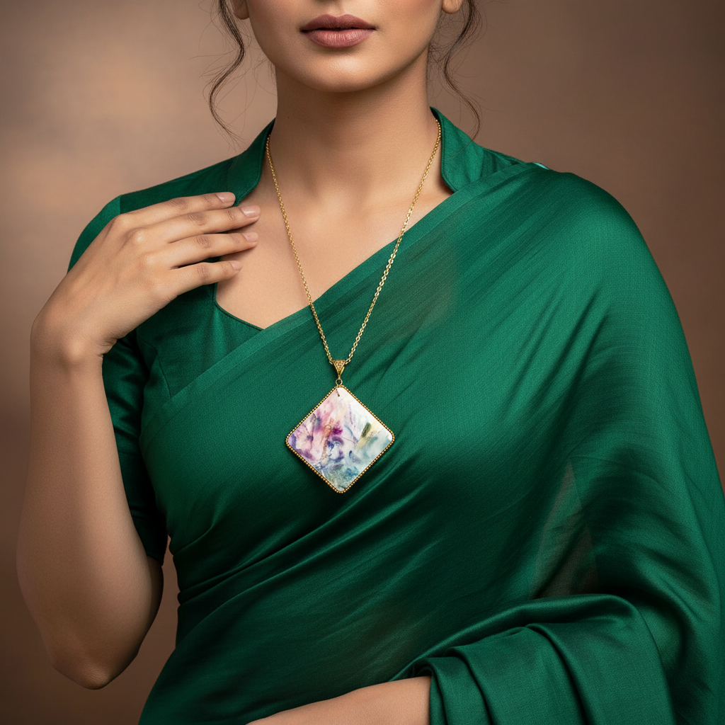Beautiful Freida necklace designed and painted by hand in various shades. This is a must have in your jewelry collection.