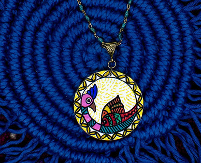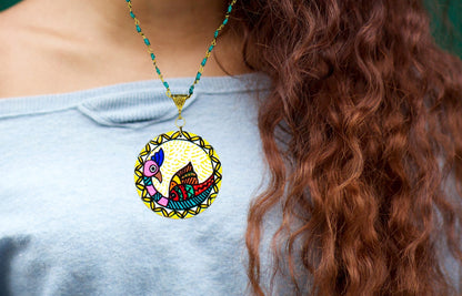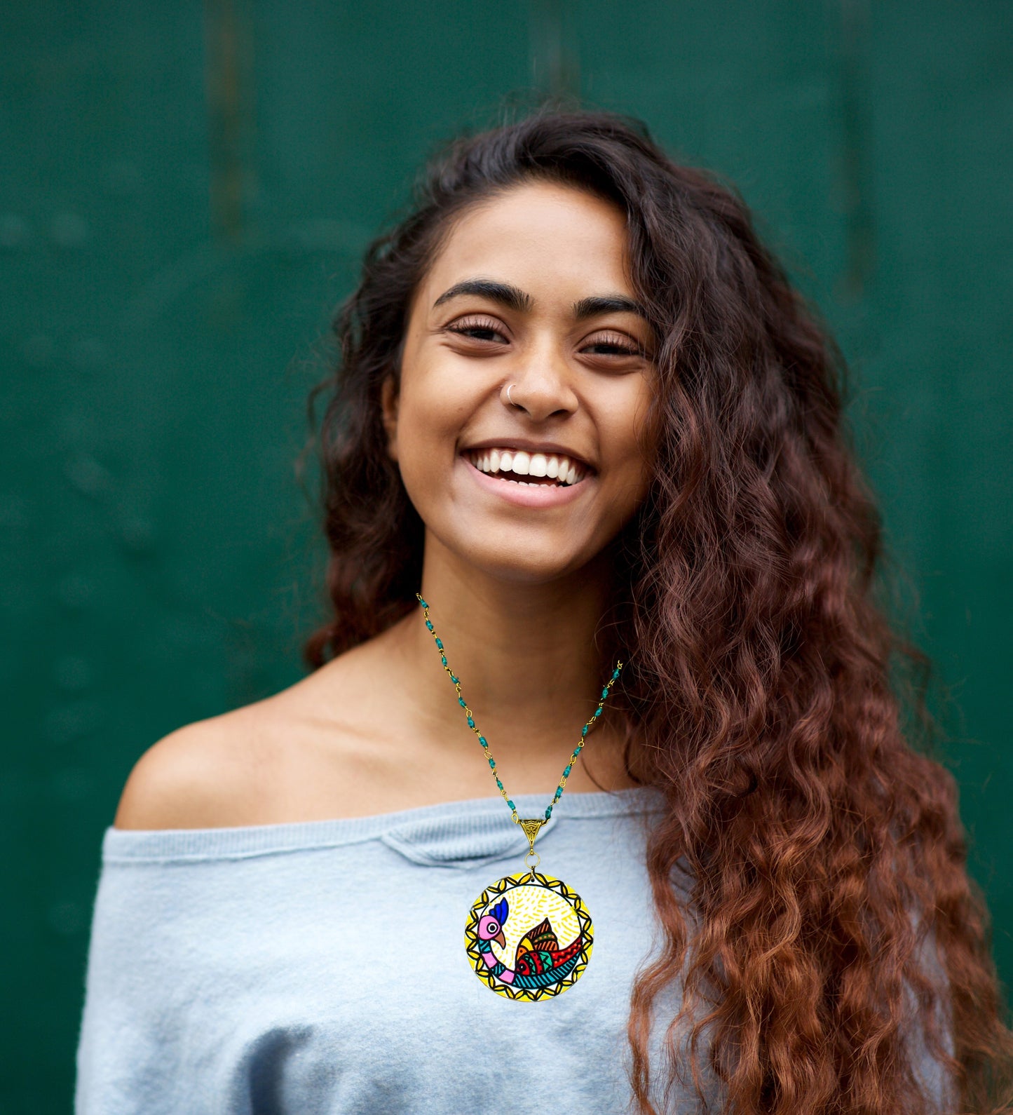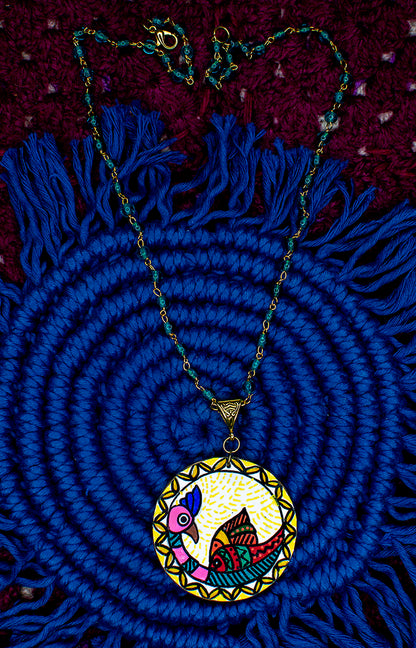 The neck chain of this necklace is adorned with matching beads that perfectly complement the centerpiece. The result is a beautiful piece of jewelry that is sure to catch the eye and elevate any outfit to the next level. The unique and elegant design of the Handpainted Madhavi Necklace makes it the perfect addition to any jewelry collection, whether you're looking for a statement piece for a special occasion or a versatile accessory to wear every day.