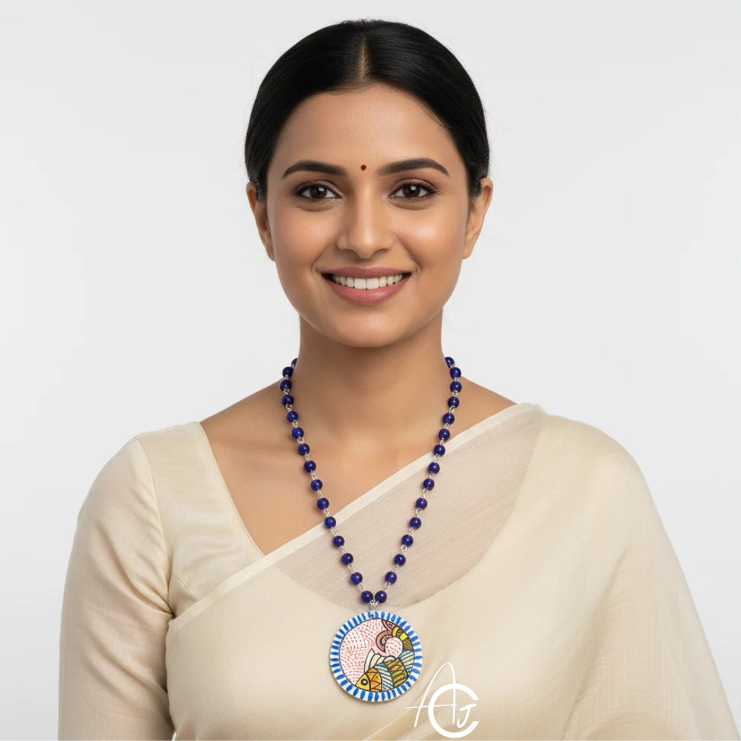 5. Handpainted Meenal Necklace is the perfect accessory to wear with ethnic attire such as sarees, lehengas, and kurtas. Its unique and intricate design will complement the traditional Indian look beautifully.