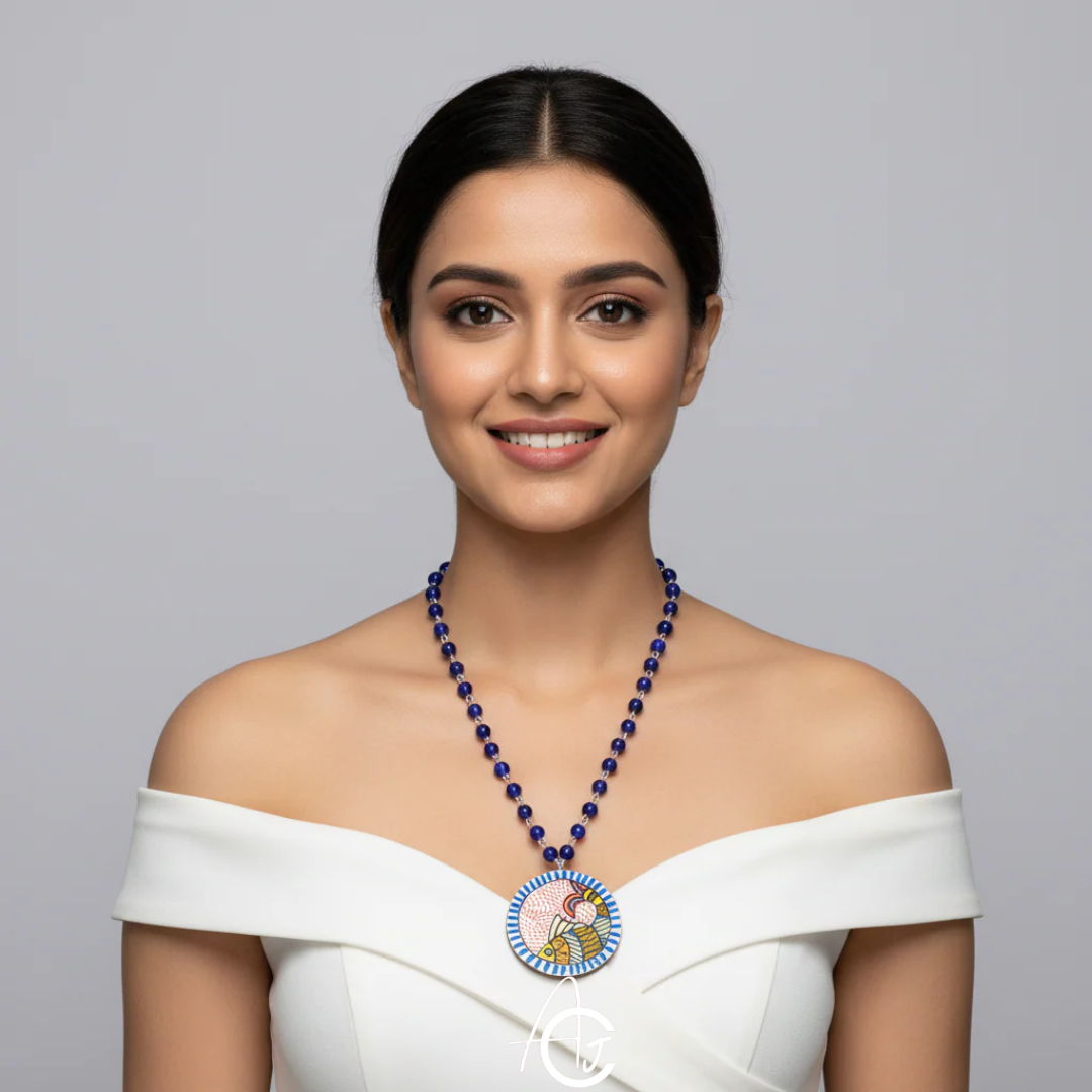 No matter how you choose to style the Handpainted Meenal Necklace, it is sure to add a touch of elegance and sophistication to any outfit