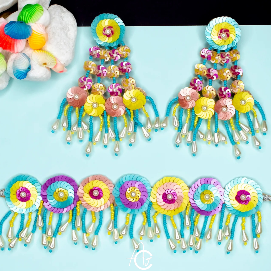 Beads Embroidered Necklace Set, Haldi Jewellery : Handmade