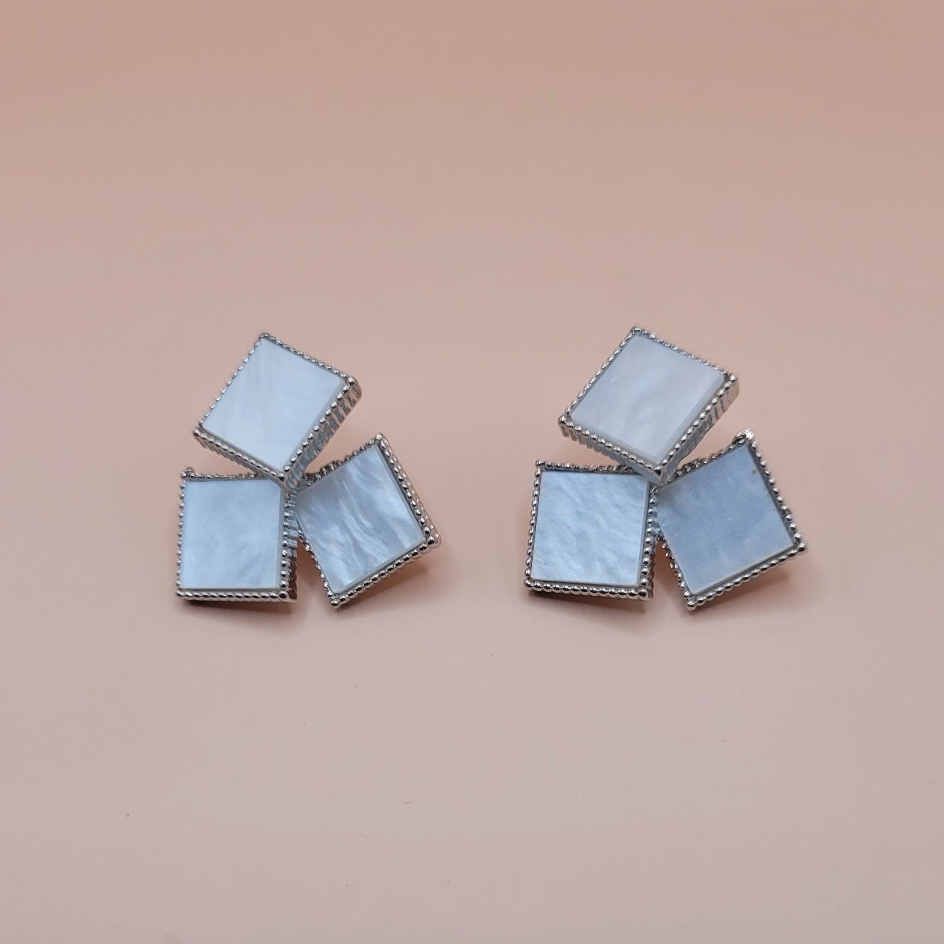 Shell Triangle Earrings Silver Tone