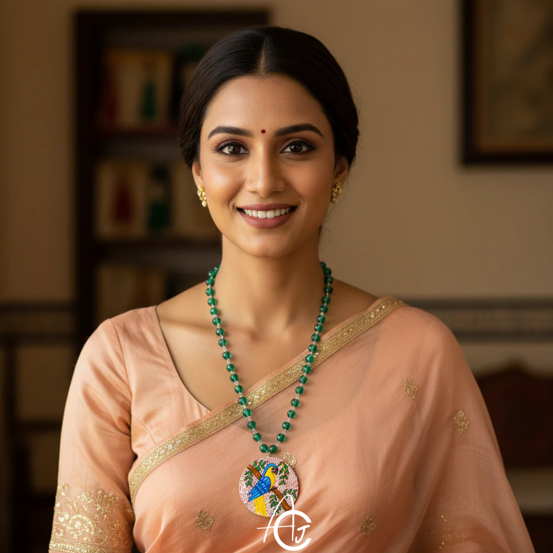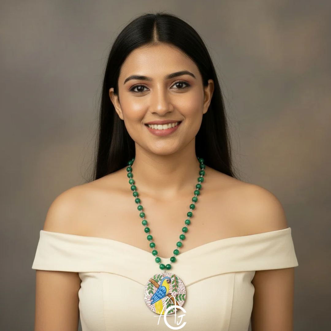 Beautiful Shuk necklace is designed and painted by hand. Neck chain has beads matching with centerpiece. This beautiful piece is a must have in your jewelry collection.